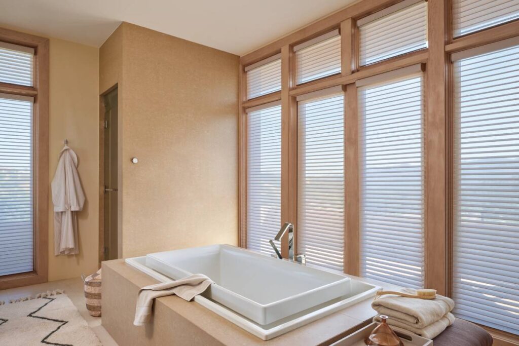 - Motorized Shades: Experience the effortless lift of Hunter Douglas Duette® Cellular Shades or the elegant transition of Silhouette® Sheer Shades and other window shades.